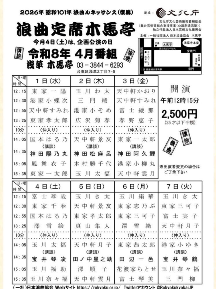 5月31日(日)12時30分開演、会場/浅草木馬亭